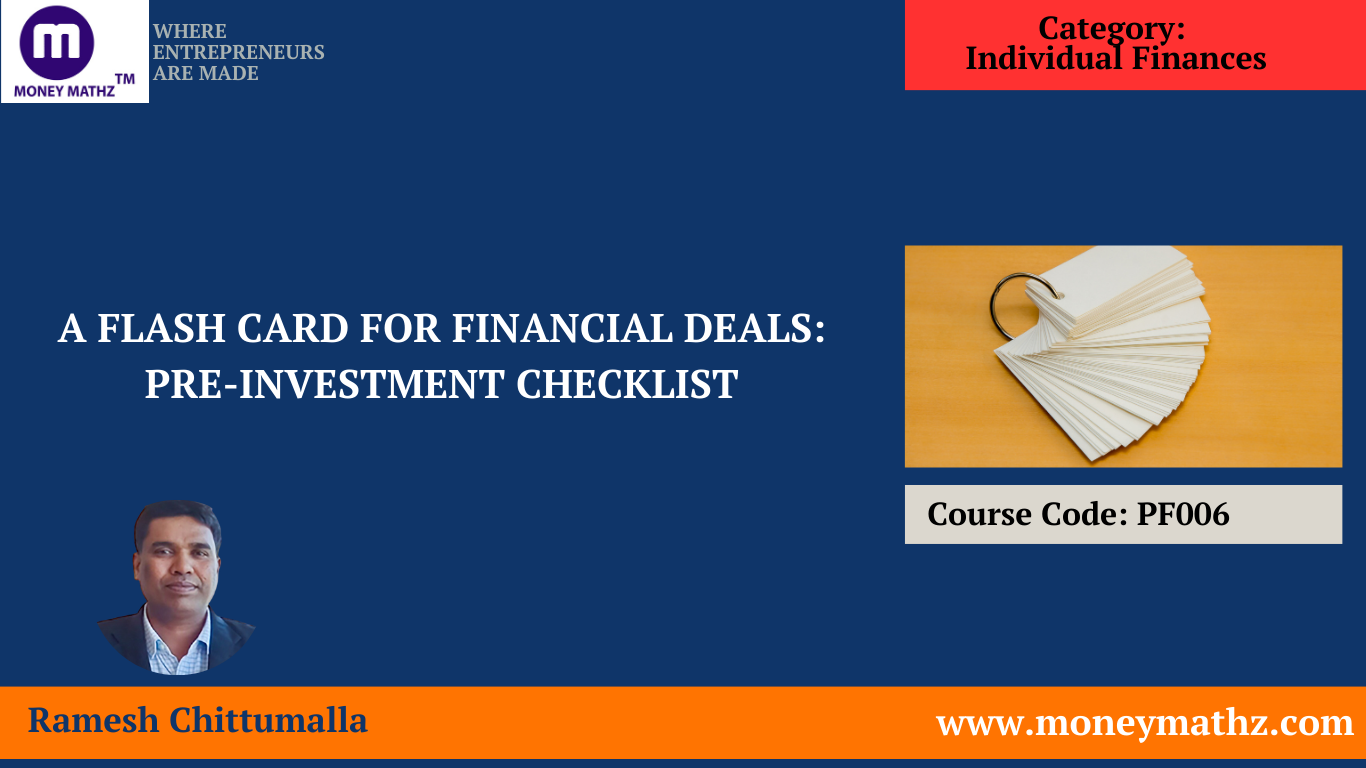 Financial Deal Card Preparation: Flash Card of Your Investments